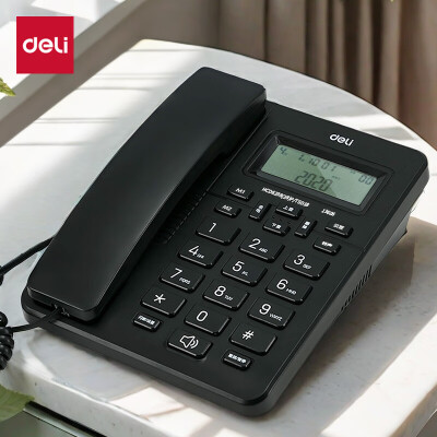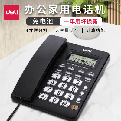 得力 普通电话机 得力(deli)电话机座机 固定电话 办公家用 来去电查询 可接分机 13606黑