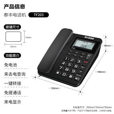 泰丰888 普通电话机 TF203家用固定电话座机 黑色