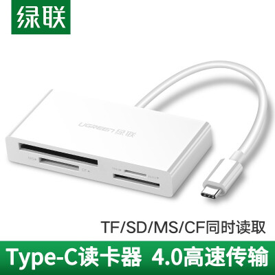 绿联 磁卡读写器 绿联 Type-C 多功能合一4.0高速读卡器 USB-C 支持SD/TF/CF/MS相机手机内存卡 4.0读卡器 40745