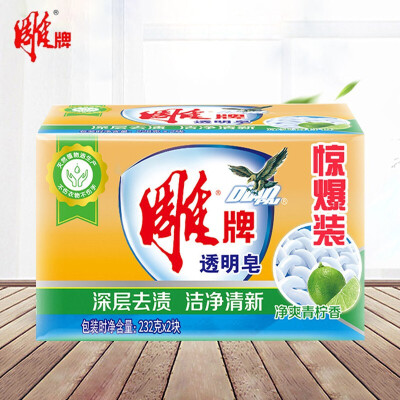 雕牌 肥(香)皂和合成洗涤剂 雕牌洗衣皂232gx2净爽青柠深层去渍透明皂肥皂不伤衣物不伤手去污团购劳保开票大品牌品质保证值得拥有 232x2雕牌透明皂 5组