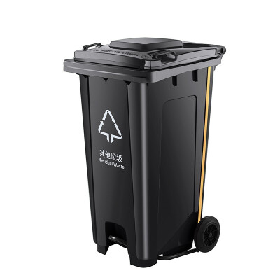 庄太太 【脚踏款120升黄色】环卫带盖大型垃圾分类垃圾桶大号脚踩脚踏式果皮箱