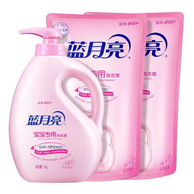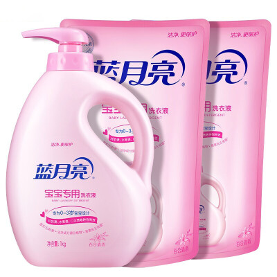 蓝月亮 肥(香)皂和合成洗涤剂 蓝月亮婴儿洗衣液套装百合清香(1kg瓶装+1kg袋装补充液*2袋)宝宝儿童衣物清洁洗衣液 手洗机洗双用10001152