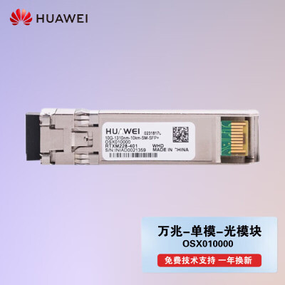 华为 办公设备零部件 华为(HUAWEI)OSX010000 华为光模块 -SFP+-10G- 万兆单模双纤光模块(1310nm,10km,LC)