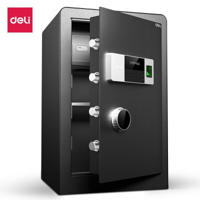 得力 保险柜 得力(deli)指纹保险柜家用 电子密码保管箱 床头入墙防盗办公保险箱 4106 黑色 高60cm
