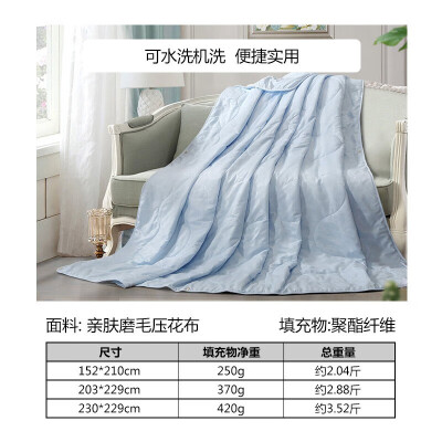 富安娜 被褥 富安娜家纺 夏被单人被可水洗儿童夏凉被子 夏季夏天薄被芯学生宿舍 跃动1米2床(152*210cm)浅蓝
