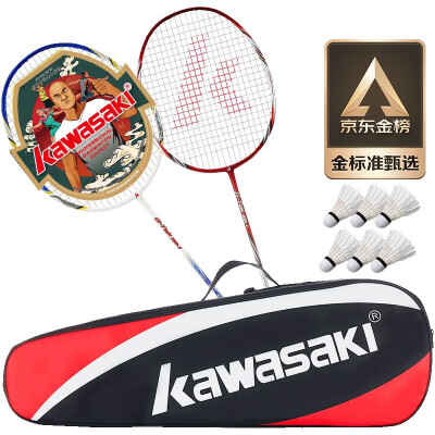 川崎 羽毛球相关设备 川崎(KAWASAKI)羽毛球拍双拍超轻碳素耐打对拍KD-1蓝红(已穿线+6球+手胶+拍包)