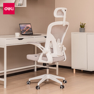得力 其他椅凳 得力 deli 小白椅 椅背扶手 可翻折电脑椅 旋转头枕 可调节腰靠办公椅 学习座椅 家用舒适 91025 白色