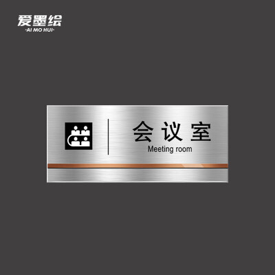 爱墨绘 其他材质架 爱墨绘 不锈钢标识牌 会议室办公室 总经理室公司部门 金属门牌 提示牌自带背胶 25*11cm