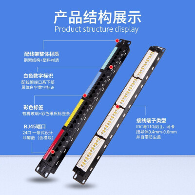 爱谱华顿 其他材质架 爱谱华顿 六类网络24口非屏蔽RJ45配线架 1U机架式屏蔽机柜理线器含模块 非屏蔽