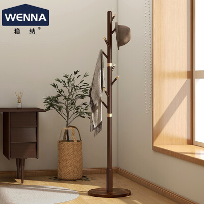 地产 其他材质架 稳纳 衣帽架 榉木衣架落地挂衣架 阳台卧室置衣架 立式实木衣架 圆盘底座胡桃色 轻奢款8105T