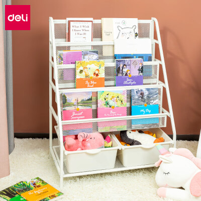 得力 其他材质架 得力(deli)一体式书架 50501 4层绘本层+1层置物层+2个收纳盒白色