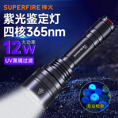 神火 S11-H照玉强光手电 鉴定玉石翡翠迷你验钞紫光灯 黑色 1套