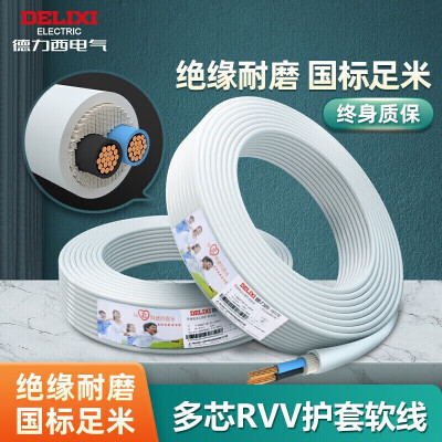德力西 电力电缆 电线 RVV1.5平方 二芯护套线软线白色 铜芯电线 50米