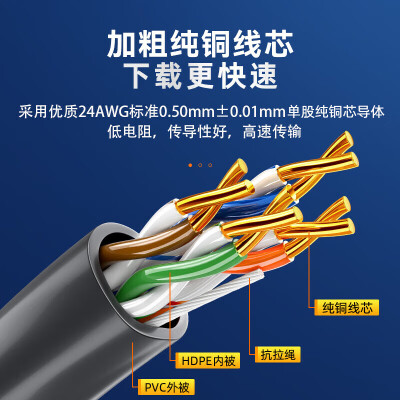 山泽 网线 山泽(SAMZHE) 网线 电脑宽带网络线室内外无氧铜家用网线 超5类非屏蔽0.5线芯 50米