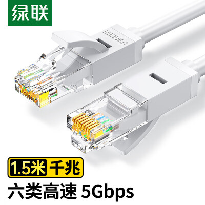 绿联 网线 绿联六类网线 千兆高速网络宽带线 6类家用电脑笔记本路由器监控线 CAT6成品跳线白色1.5米 15986