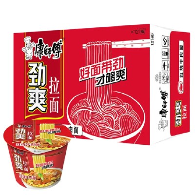 康师傅 方便食品 方便面 劲爽红烧牛肉面 101g*12桶 整箱装