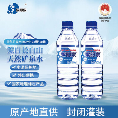 泉阳泉(QUANYANGQUAN) 饮用水(瓶装) 长白山天然矿泉水小瓶装饮用水600ml*24瓶*10箱 600ml塑膜包装
