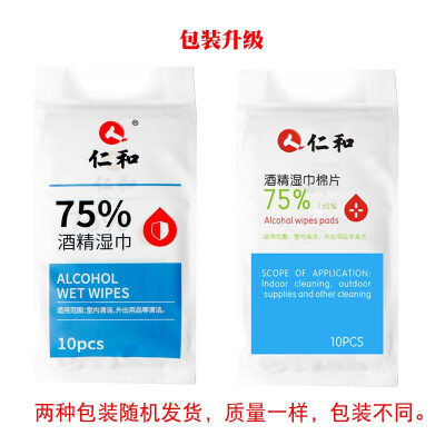 仁和 防护用品 仁和湿巾75%酒精湿巾消毒卫生湿纸巾一次性湿巾独立小包装免洗便携包独立包装 仁和酒精湿巾独立包装(10片*10包)