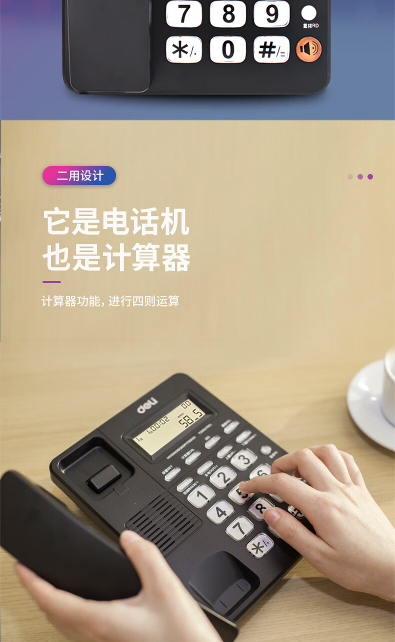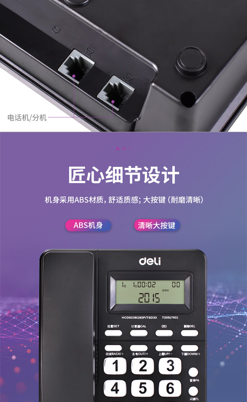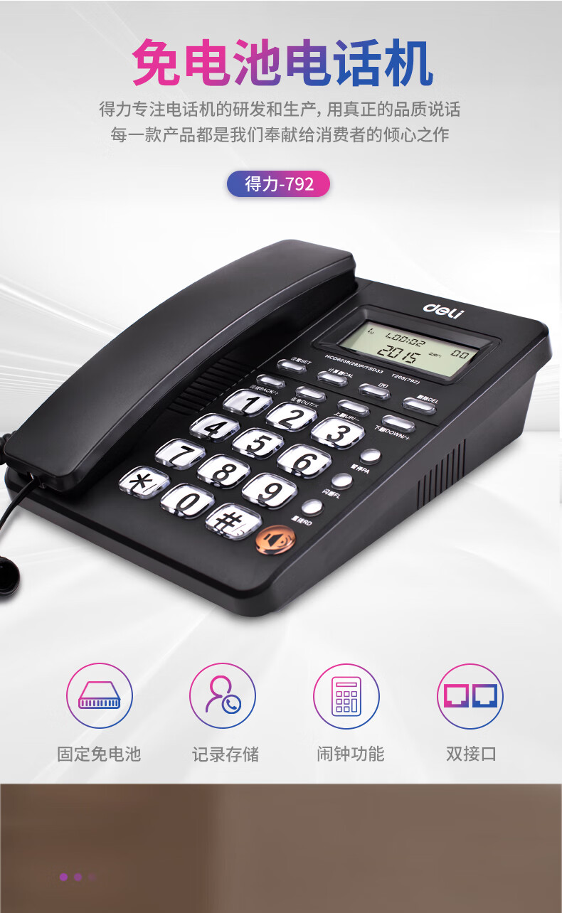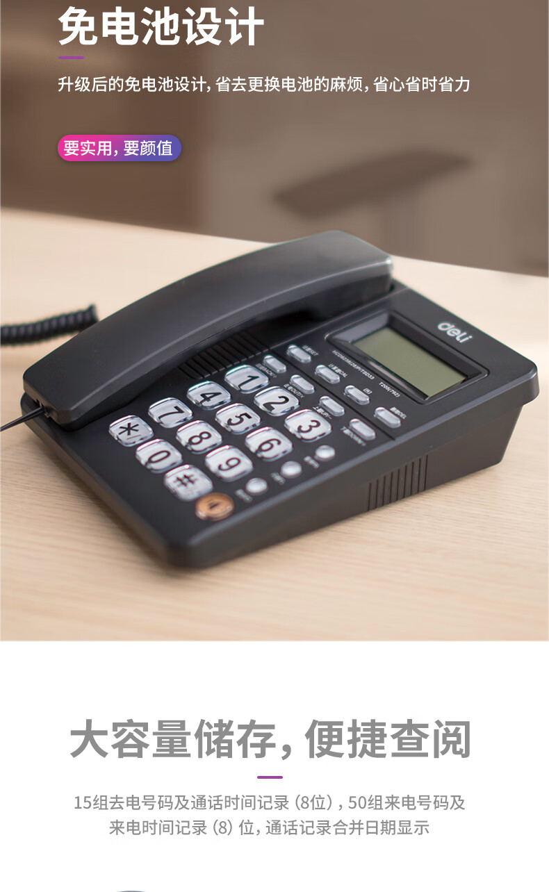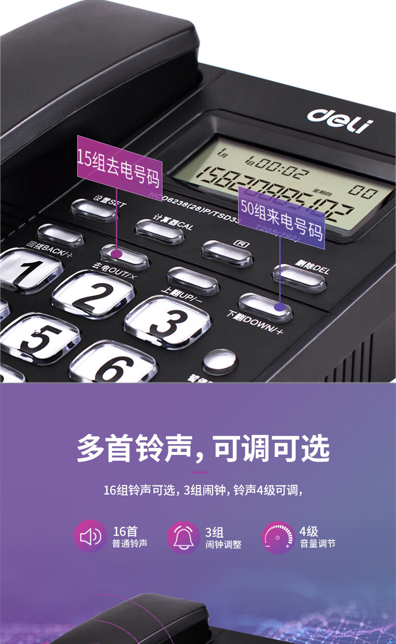 得力(deli)792 电话机座机 固定电话 办公家用 免电池 带计算机功能 黑