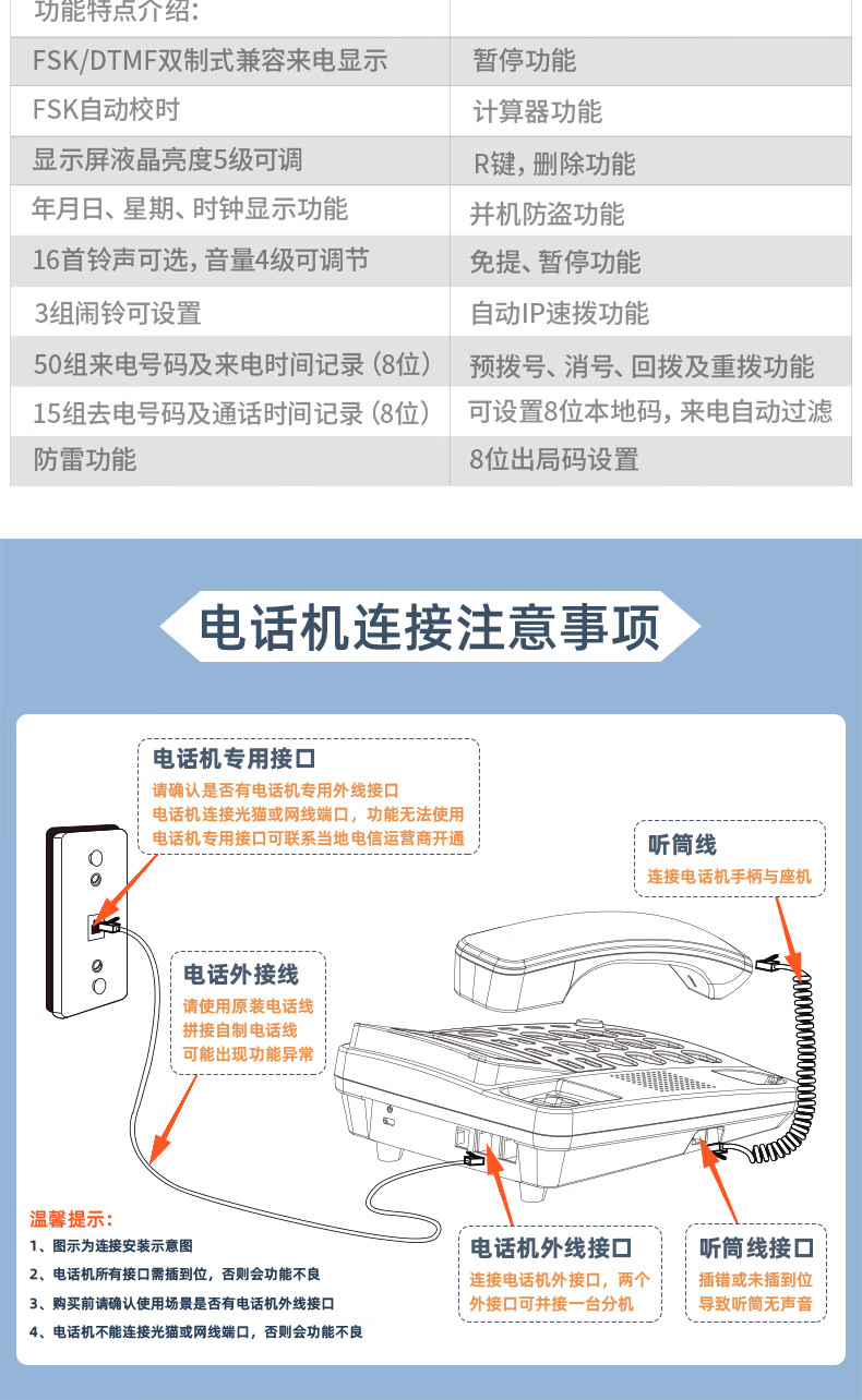 得力(deli)787 电话机座机 固定电话 大容量存储 防雷、抗电磁干扰 白色
