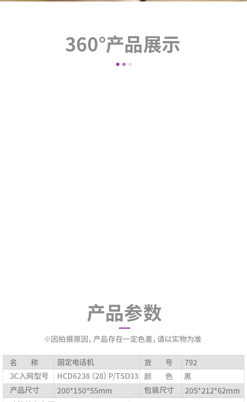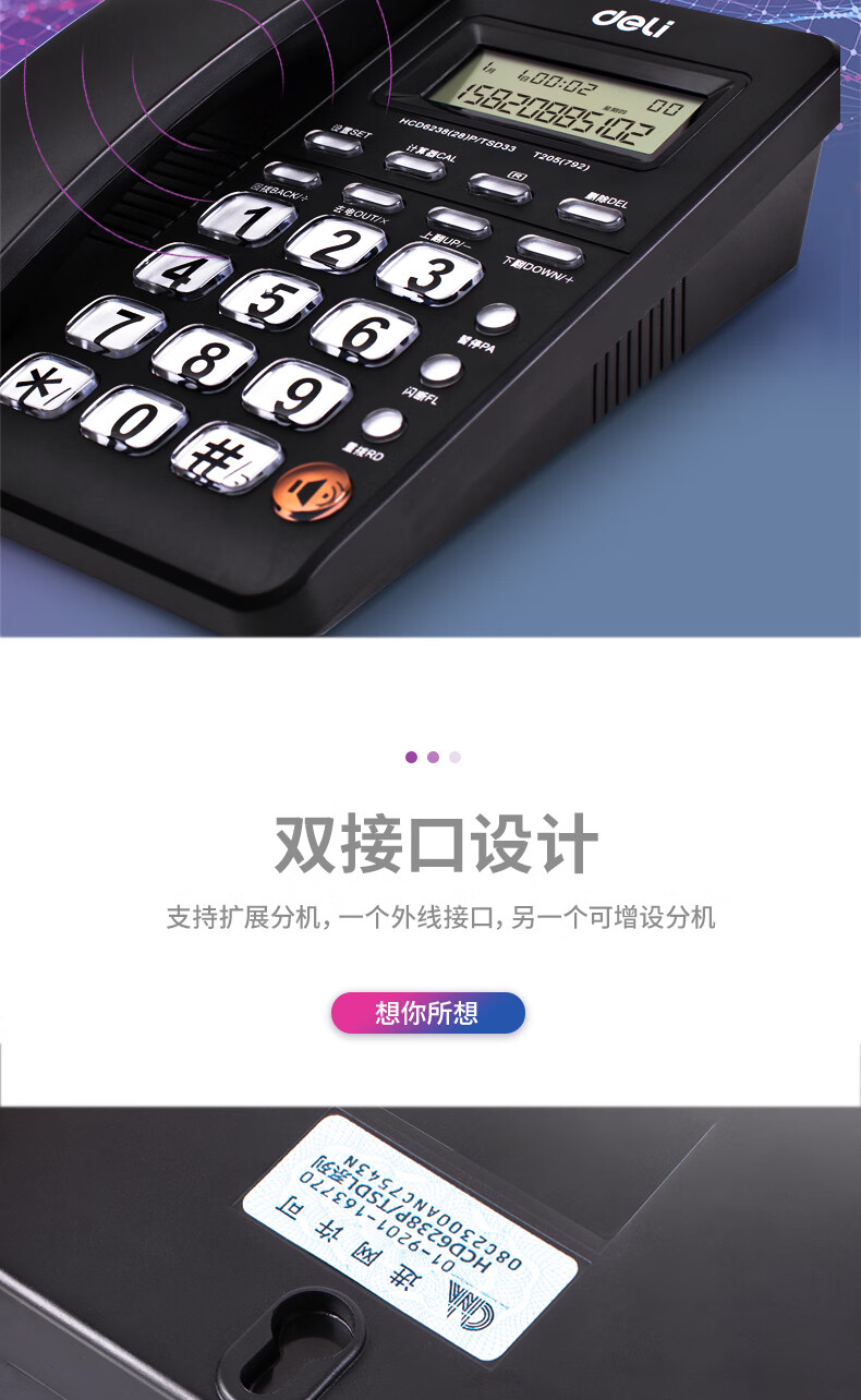 得力(deli)789 电话机座机 固定电话 翻转可摇头 可接分机 黑色